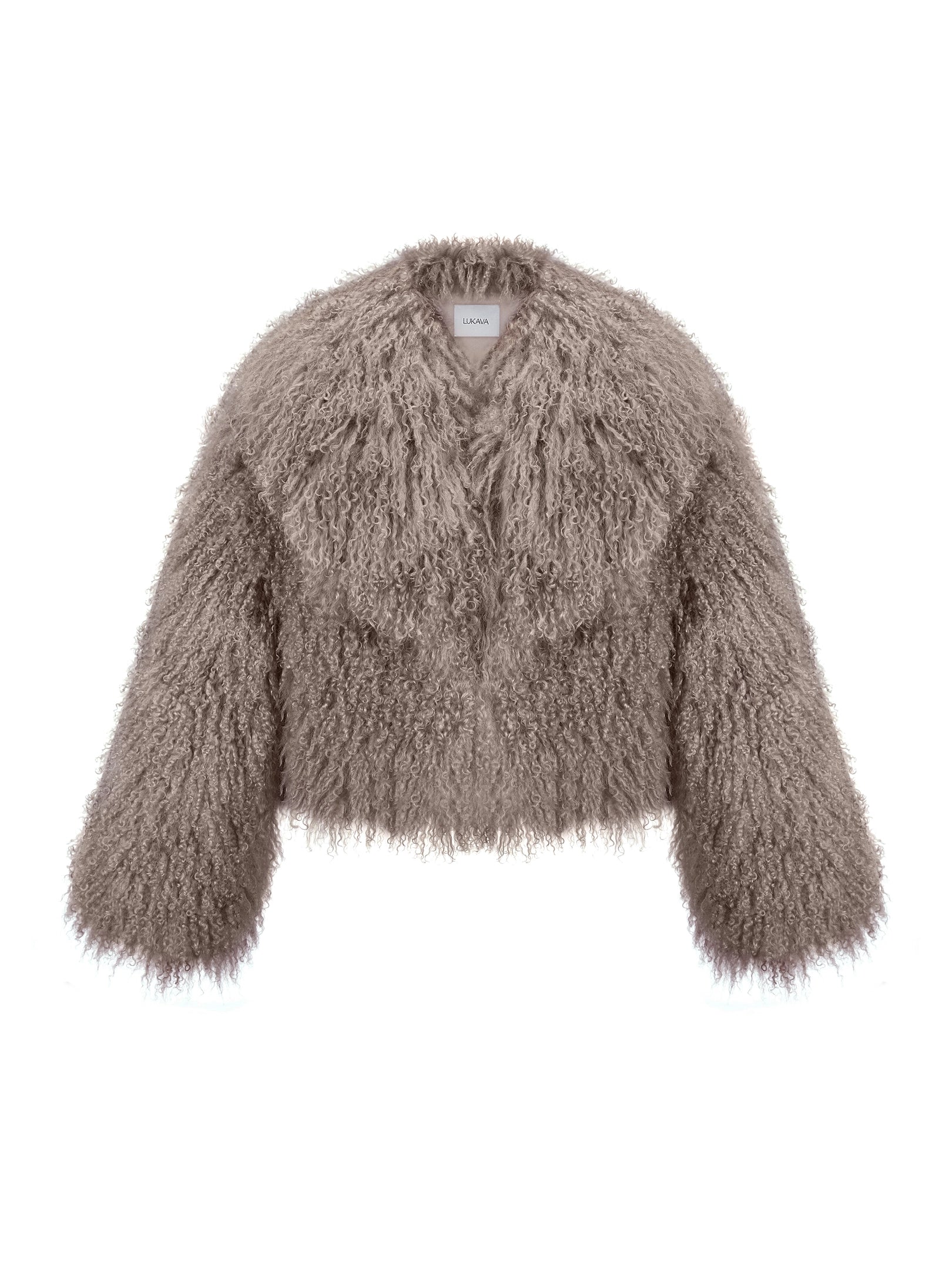 Crafted from natural lama fur, this coat offers a unique texture and volume, bringing both luxury and lightness to your look. The cropped silhouette adds a modern twist and highlights the waist, making it easy to pair with trousers, dresses, or denim. The perfect choice for those who seek warmth with a bold sense of style.