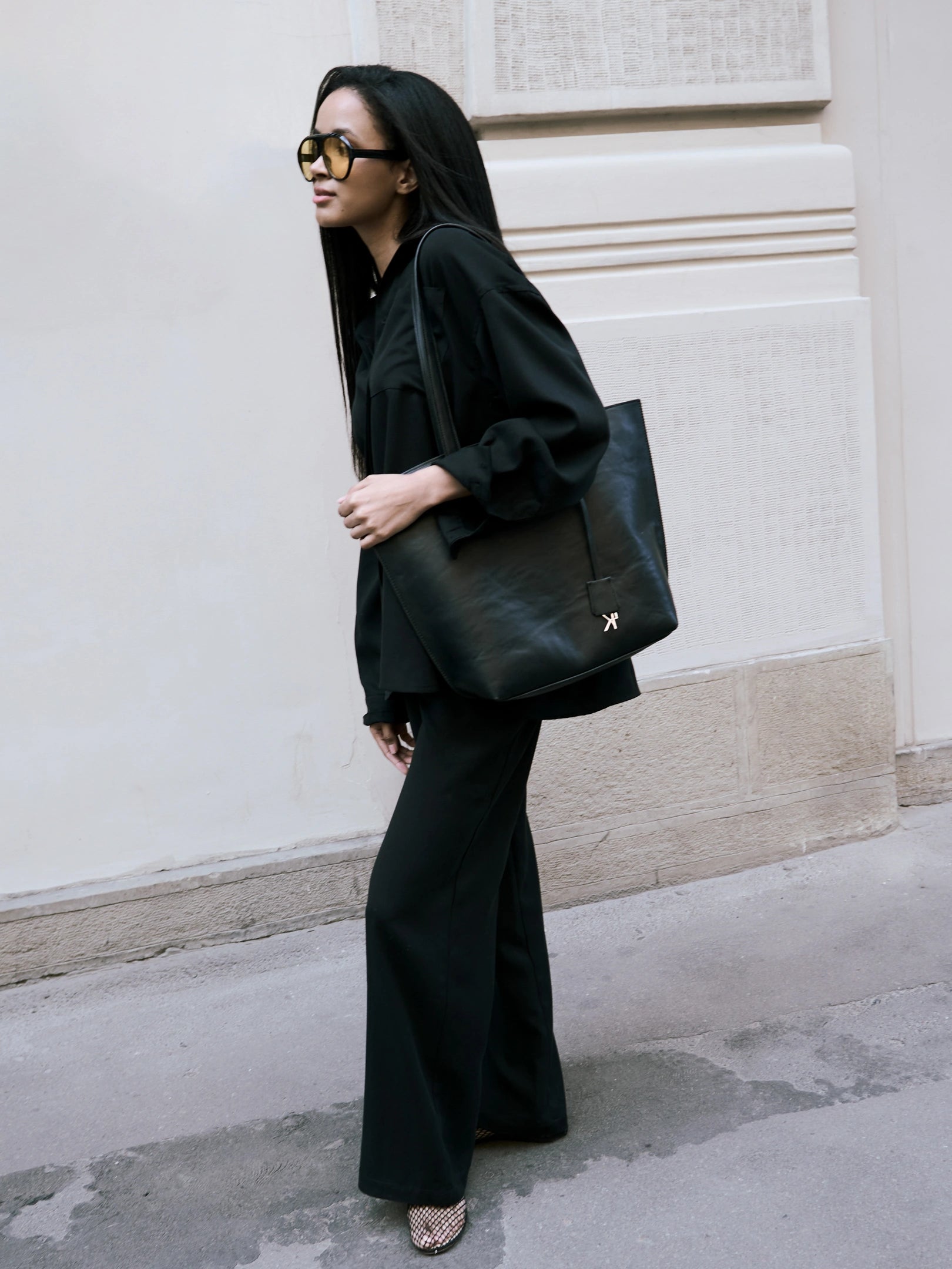 Minimalist yet capacious — this shopper is made for those who value quality, simplicity, and functionality. Crafted from soft genuine leather with clean lines and practical handles, it’s perfect for everyday use or travel. A subtle metal logo adds a refined accent without overpowering the look.