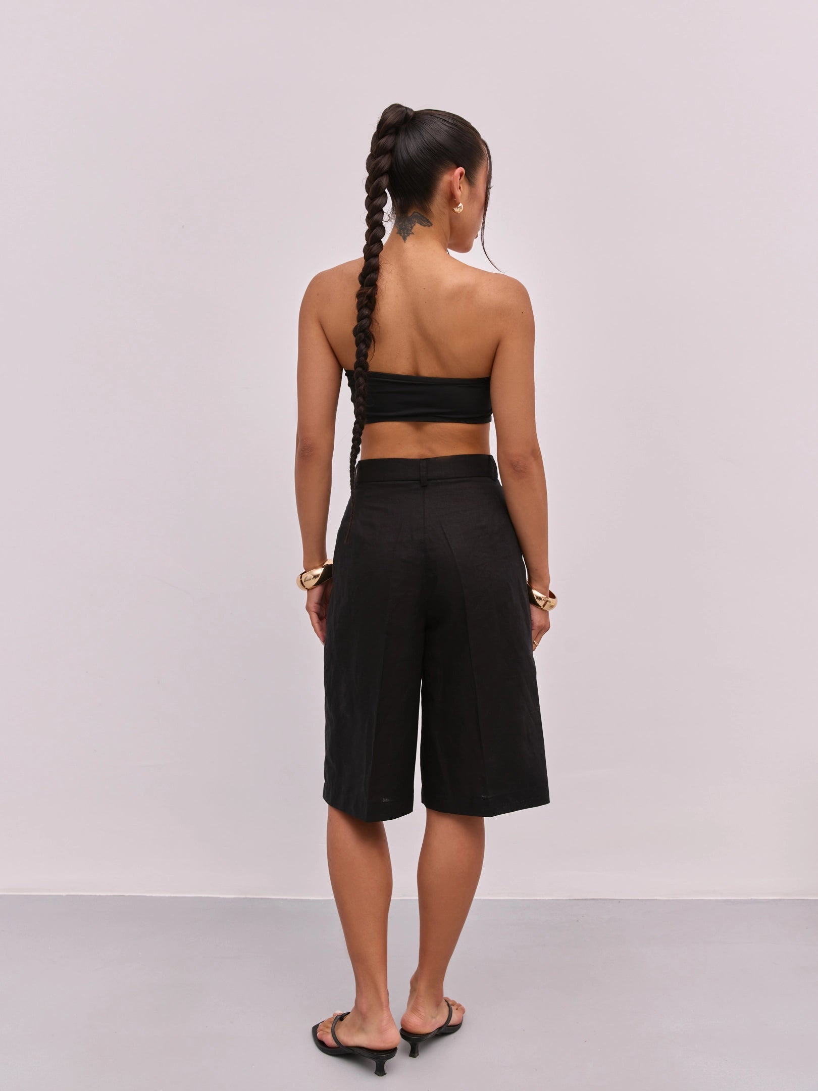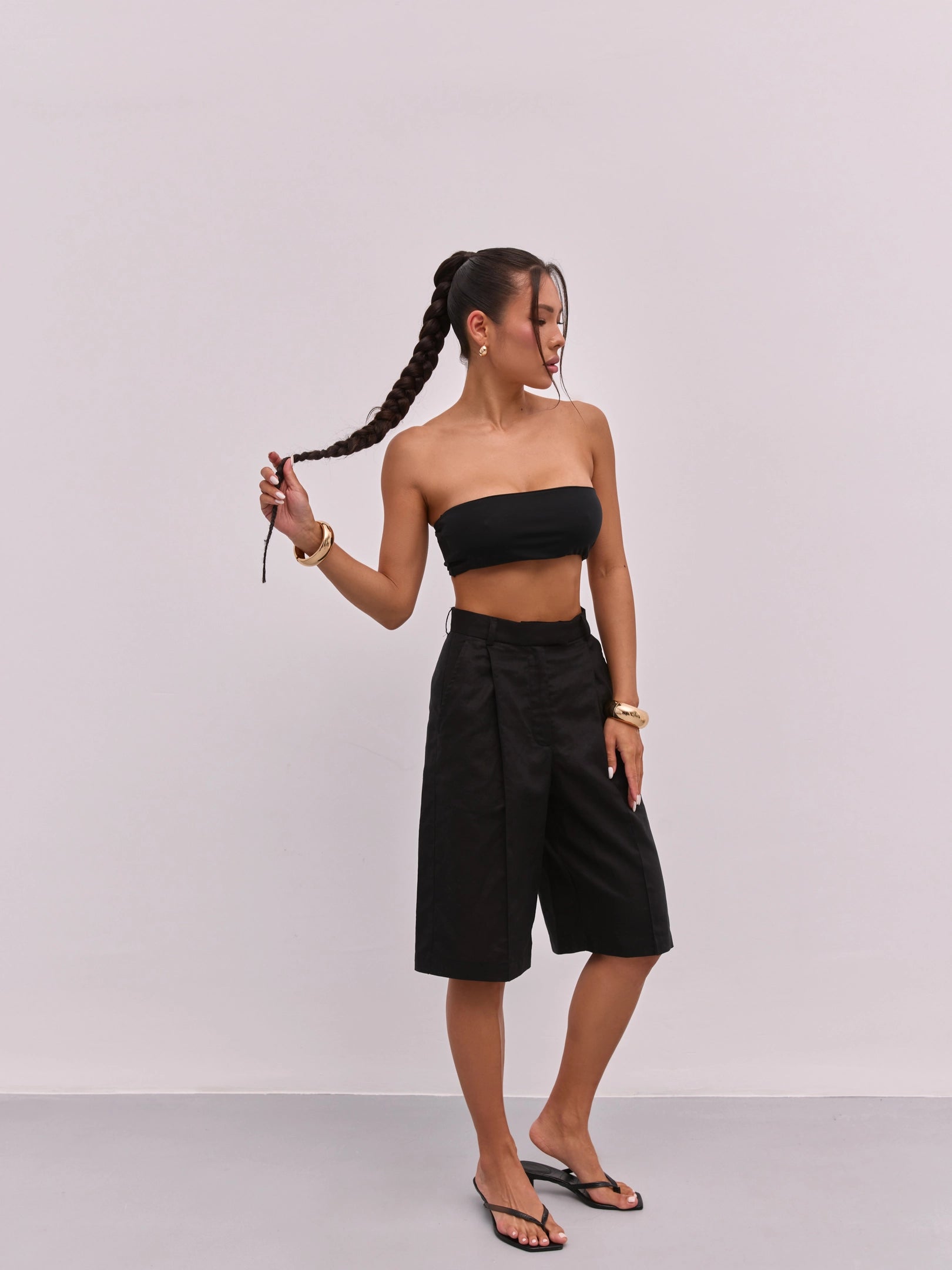 Суперлаконічний топ-бандо з еластичного біфлексу. Щільно облягає тіло, підкреслюючи фігуру. Ідеально для поєднань із високою посадкою.