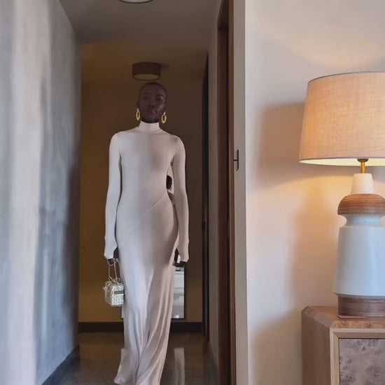Силуетна сукня представлена в довжині максі та виконана зі 100% віскози.