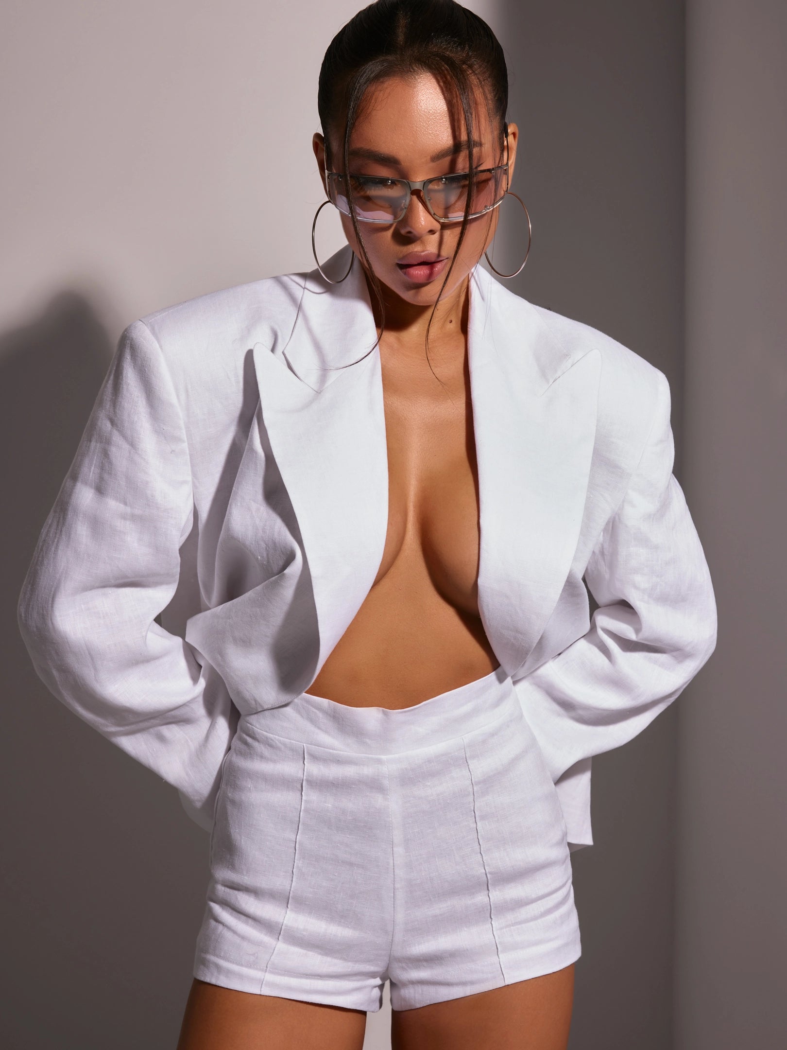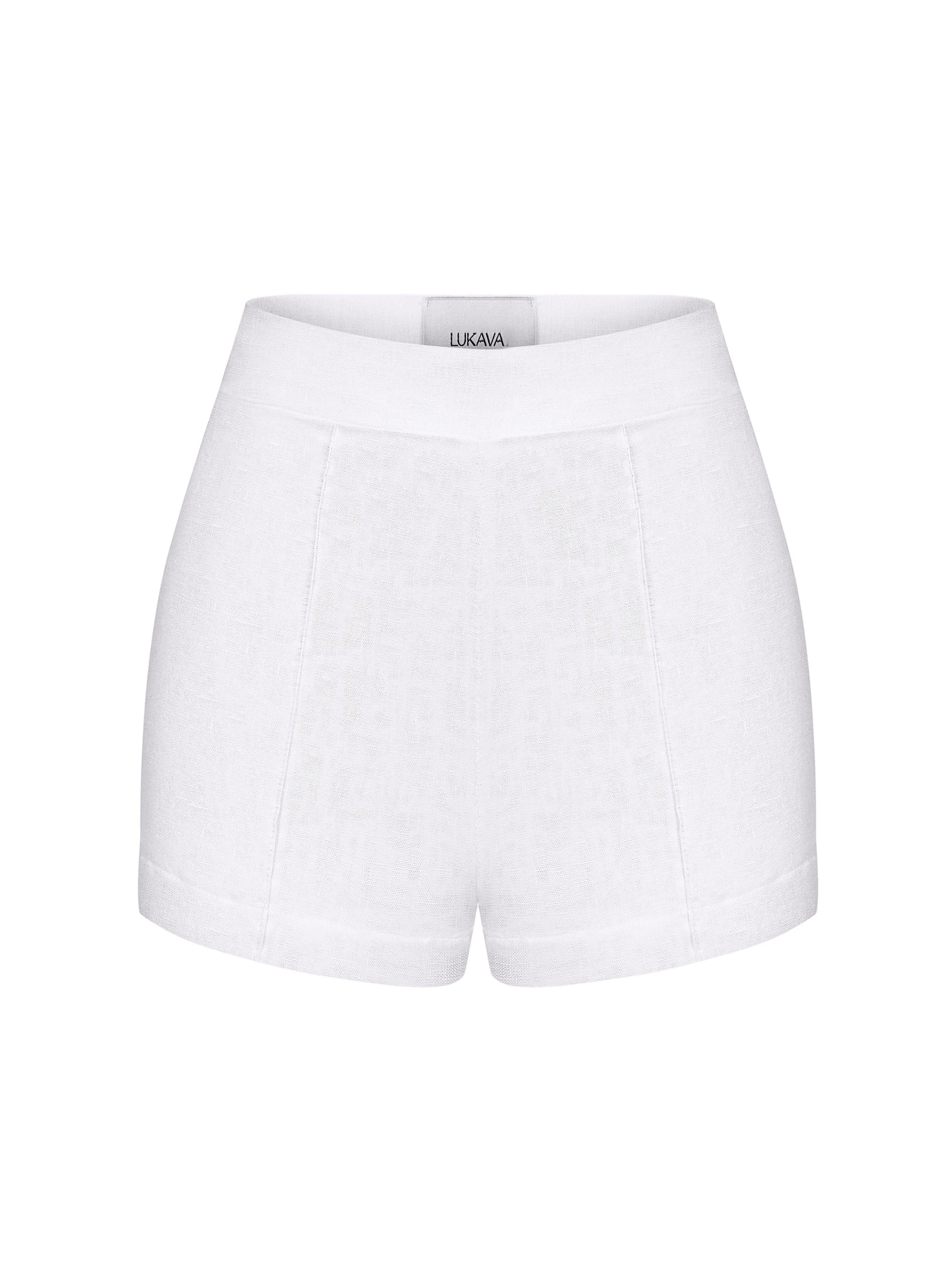 Білі міні шорти з 100% льону. Легка посадка, акцент на талії. Дихаючий матеріал для спекотних днів.