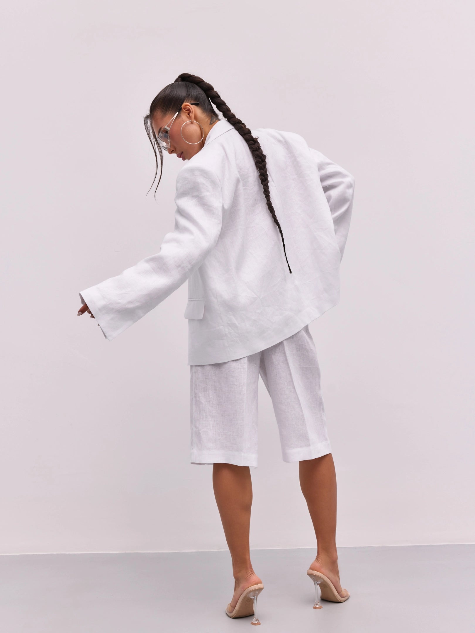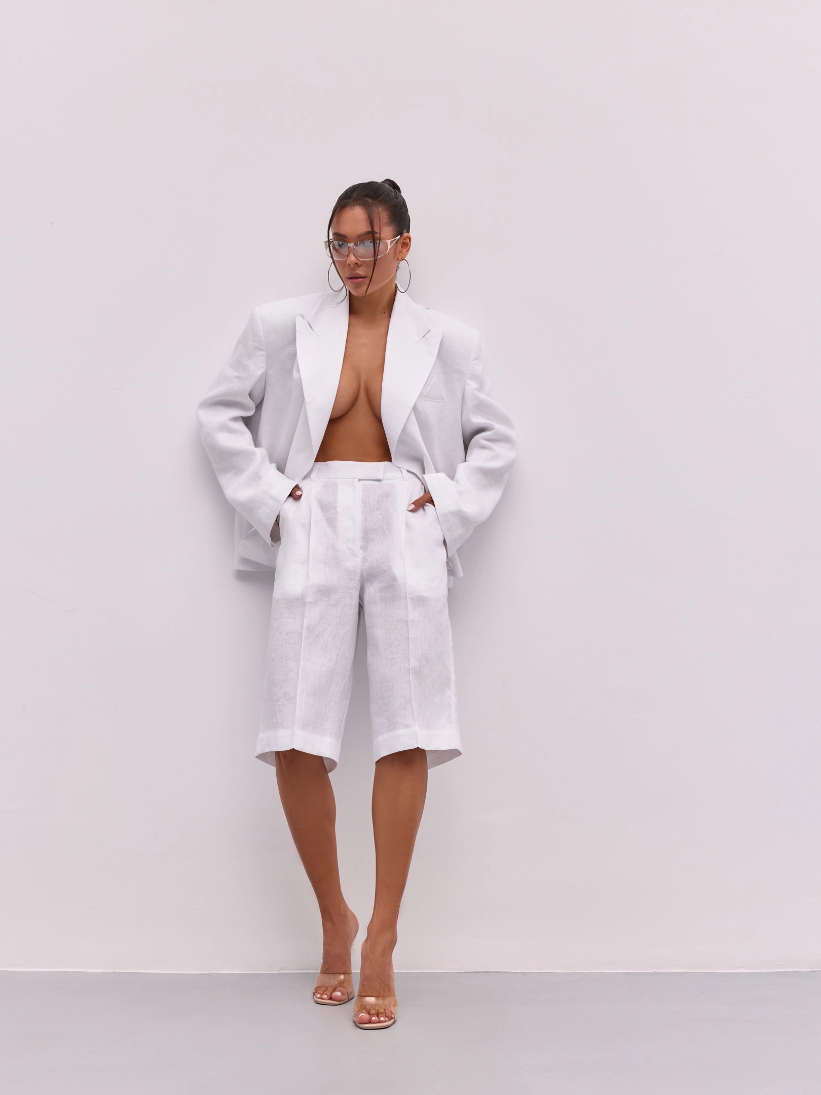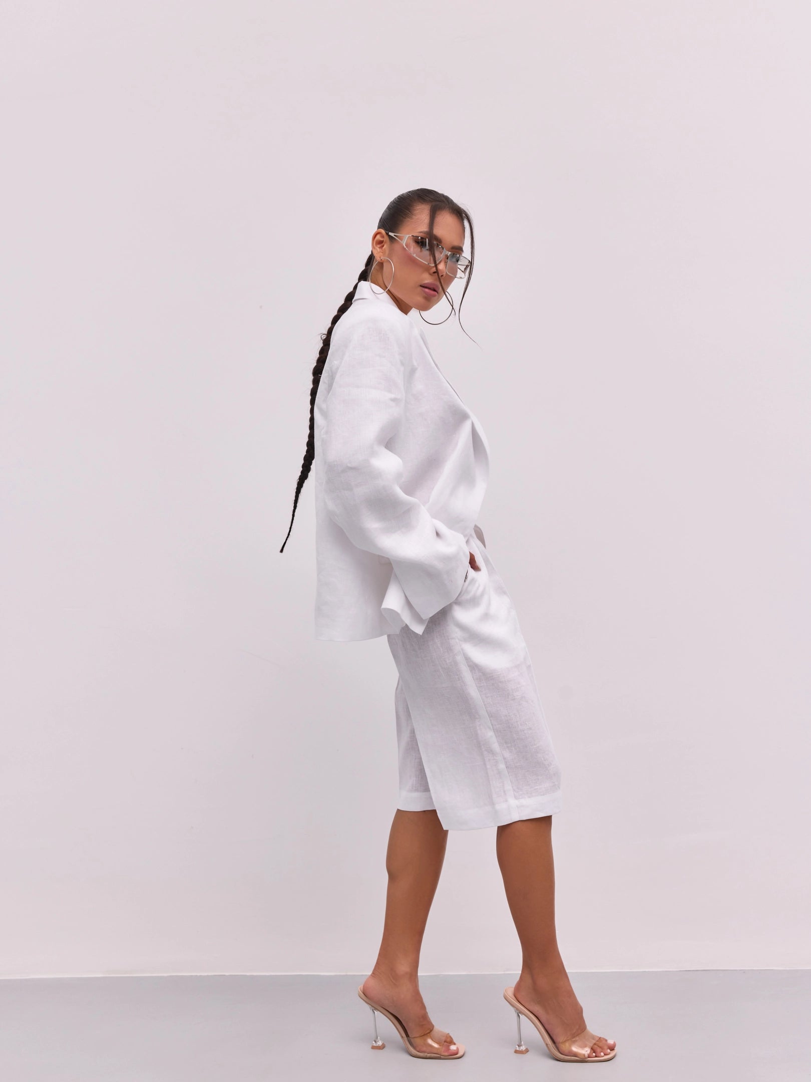 Лляні бермуди з високою посадкою та лаконічним дизайном. Легкі й дихаючі — ідеальні на літо.