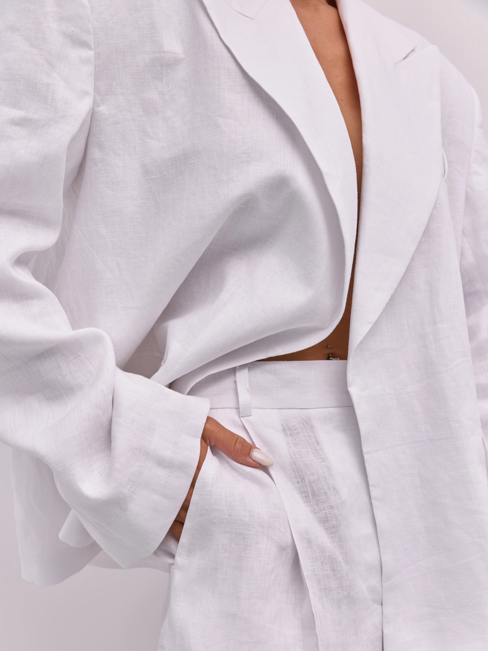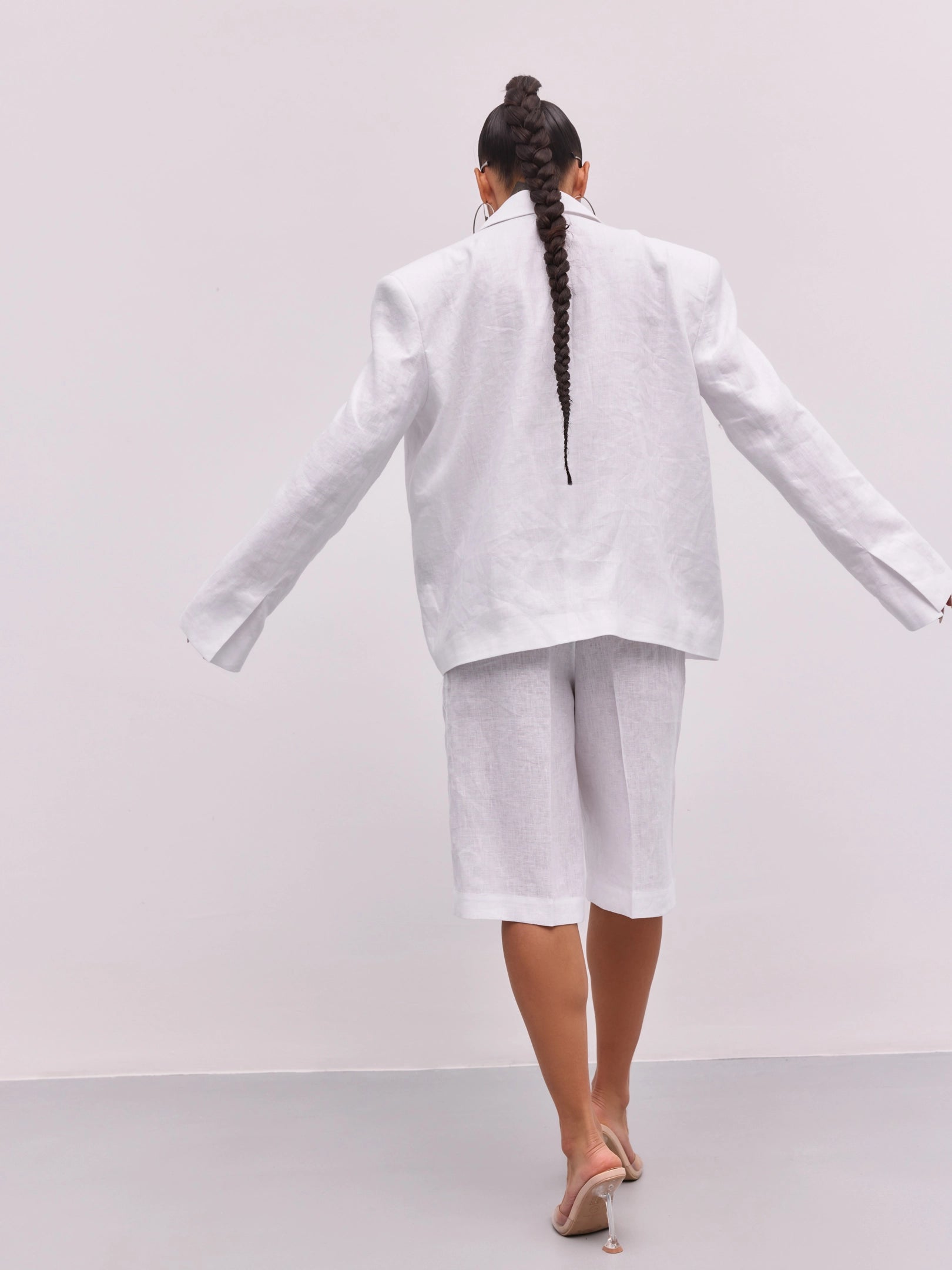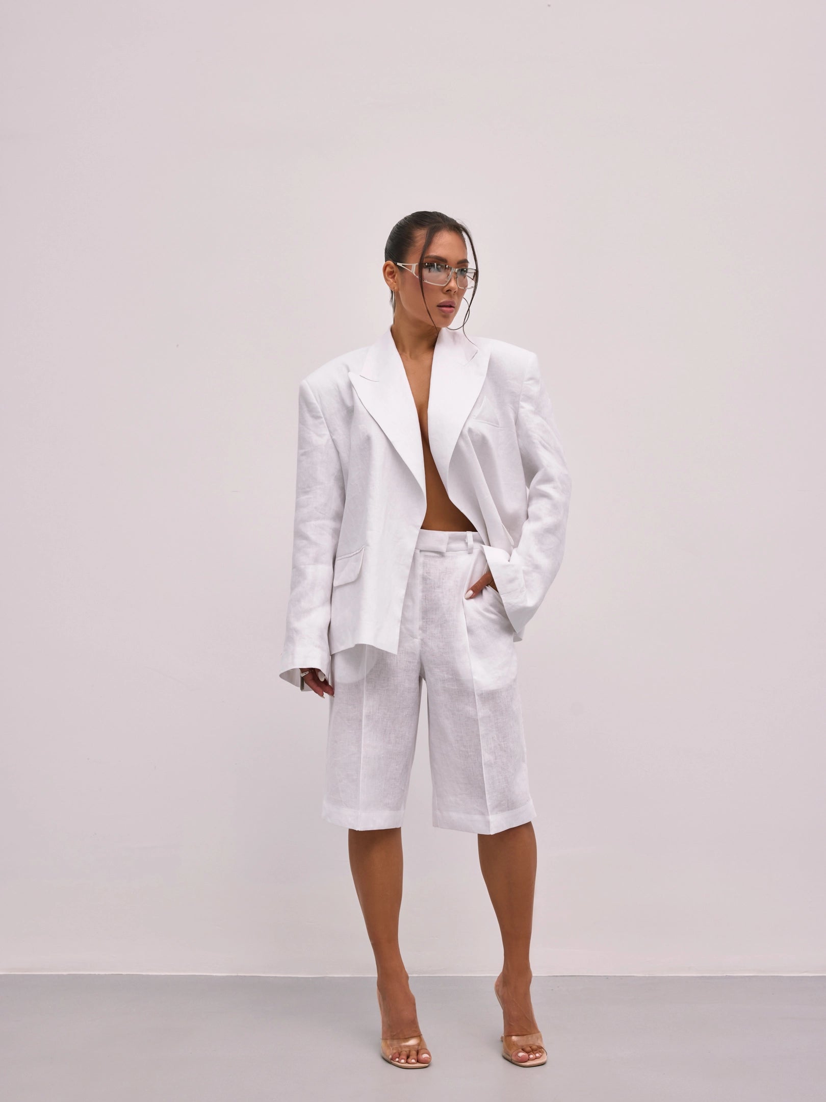 Лляні бермуди з високою посадкою та лаконічним дизайном. Легкі й дихаючі — ідеальні на літо.